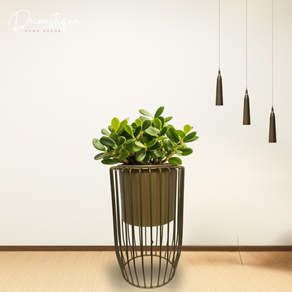 Decorustique Golden Net Metal Planter | Decorative Pot with Stand – Black